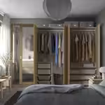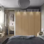 Если вы хотите дополнить каркас гардероба ПАКС раздвижными дверьми, высота потолка должна быть минимум 205 см.