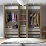 Если вы хотите дополнить каркас гардероба ПАКС раздвижными дверьми, высота потолка должна быть минимум 242 см.