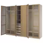 Каркас гардероба/полка/вставка с 4 отделениями/дверь/плавно закрывающиеся петли/штанга платяная/ящик/сетчатая корзина/направляющие для корзин/выдвижная полка
