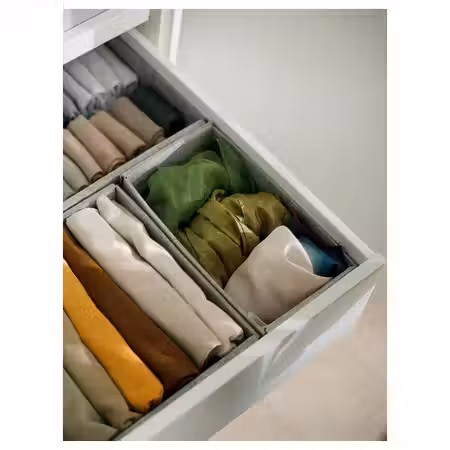 Корзина подходит для хранения сложенной одежды и различных аксессуаров.