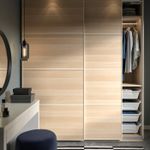 Переверните панели, чтобы изменить внешний вид гардероба. Каждая сторона имеет свою отделку. Используйте один вариант отделки или сочетайте оба в одном решении.