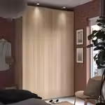 Для раздвижных дверей не нужны ручки, что придает дизайну гардероба лаконичный облик, позволяя сочетать его с мебелью в разных стилях.