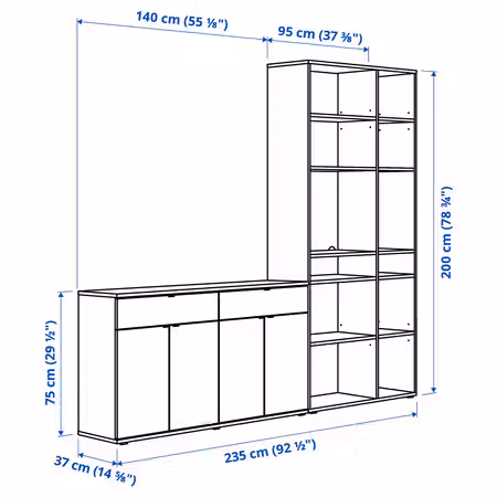 ВНИМАНИЕ! Не вешайте каркас ПЛАТСА глубиной 55 см на стену. Его следует ставить на пол или на другой стоящий на полу каркас.