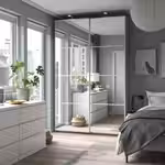 Для раздвижных дверей не нужны ручки, что придает дизайну гардероба лаконичный облик, позволяя сочетать его с мебелью в разных стилях.