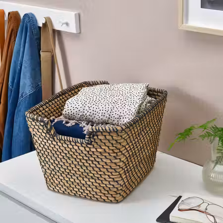 Корзина подходит для хранения сложенной одежды и различных аксессуаров.