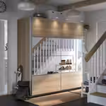 Для раздвижных дверей не нужны ручки, что придает дизайну гардероба лаконичный облик, позволяя сочетать его с мебелью в разных стилях.