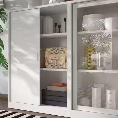 Можно использовать по отдельности или в комбинации с другой мебелью серии ХАУГА, чтобы выдержать интерьер в едином стиле и создать более вместительное решение для хранения.