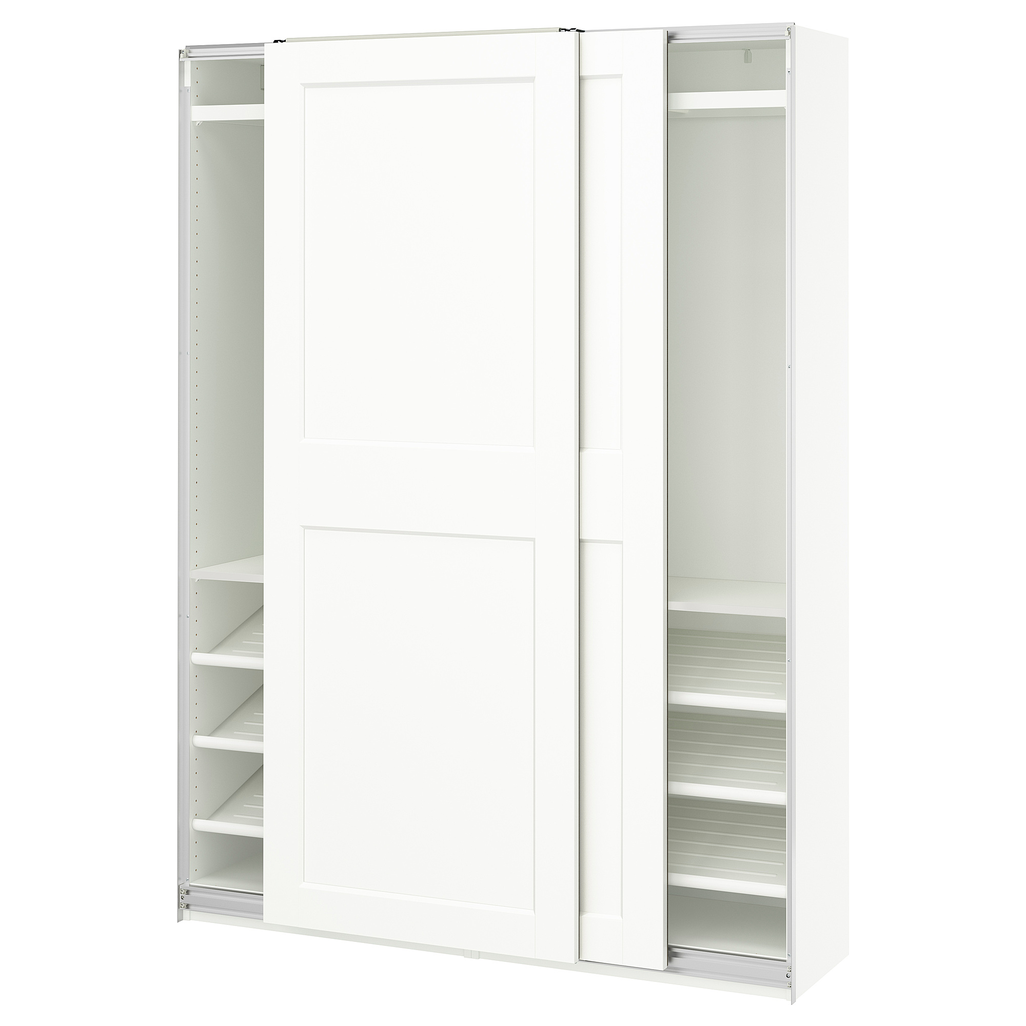 Гардероб с раздвижными дверями, белый, белый, 150x43x201 см IKEA PAX ПАКС, GRIMO ГРИМО включает в себя следующие материалы: