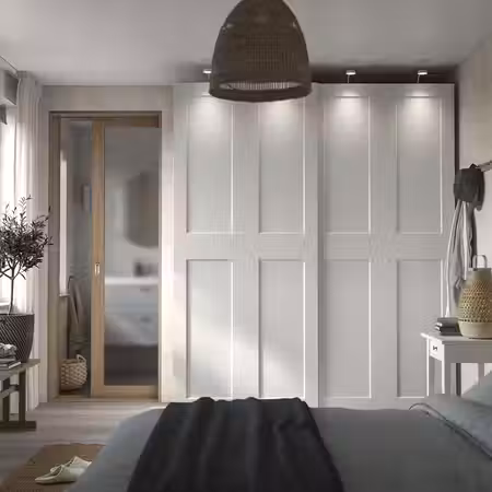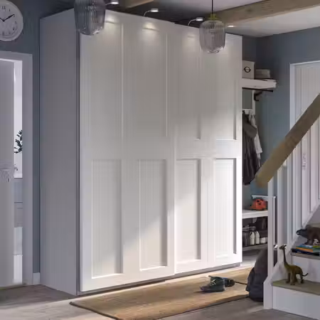 Если вы хотите дополнить каркас гардероба ПАКС раздвижными дверьми, высота потолка должна быть минимум 205 см.