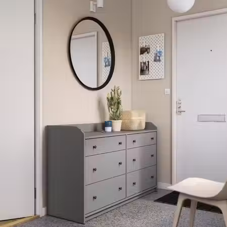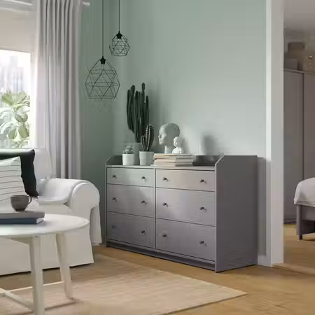 Можно использовать в спальне или любой другой комнате, как самостоятельный предмет мебели или в сочетании с другими товарами из серии ХАУГА. В этот широкий комод поместится много вещей, а столешница идеально подходит для всего самого ценного.