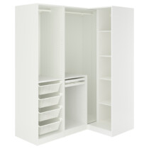 Каркас гардероба/сетчатая корзина/выдвижная многофункцион вешалка/направляющие для корзин/выдвижная полка д/обуви/выдвижная полка/полка/дополнительн угловой модуль/4 полки/дверь/плавно закрывающ петли д/угл секции/плавно закрывающиеся петли/штанга платяная