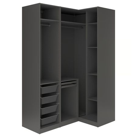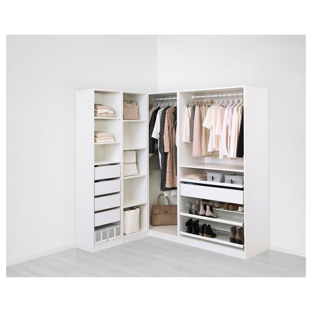 В гардеробе ПАКС вы сможете хранить много вещей на малой площади. Здесь есть платяные штанги для короткой и длинной одежды на плечиках, вентилируемые корзины, а также ящики и выдвижные полки, пространство которых можно оптимизировать с помощью
