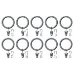 Повесьте гардины, используя кольца с зажимами или кольца с крючками. В набор входит: 10 колец (диам. 38 мм), 10 зажимов с крючками и 10 крючков. Гардинные крючки РИКТИГ продаются отдельно. Диаметр: 38 мм. Макс нагрузка: 3 кг.
