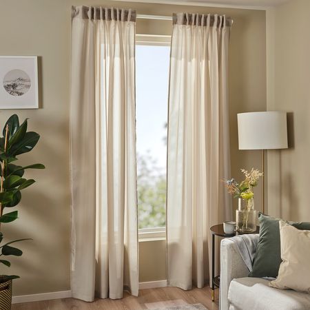 Длина 300 см позволяет повесить гардину под потолком и визуально увеличить высоту, либо можно повесить её над окном и оставить ниспадать на пол.