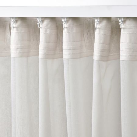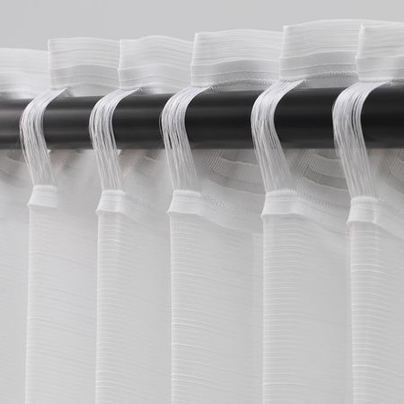 Тесьма по верхнему краю позволяет повесить гардину непосредственно на карниз, используя специальные прорези.