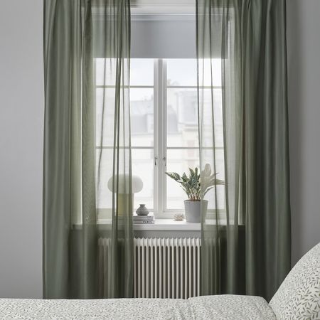 Пропускающие свет гардины SILVERLÖNN светло-серого цвета из хлопковой ткани, похожей на лён, красиво обрамляют окно и создают гармонию.