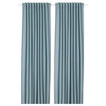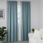 Затемняющие свет гардины МАЙГУЛЛ изготовлены из роскошной мягкой ткани темного серо-бирюзового цвета.
