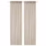 Легкие светло-бежевые гардины ХЭЛЛЕБРЭККА создают атмосферу воздушности и позволяют наслаждаться видом из окна.