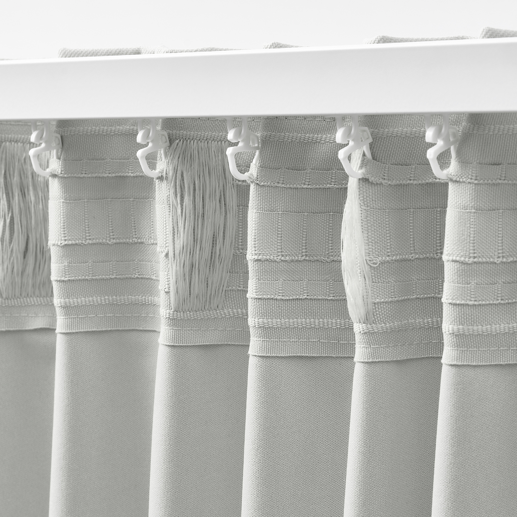 Тесьма по верхнему краю позволяет повесить гардину непосредственно на карниз, используя специальные прорези. Гардину также можно повесить на специальные крючки с бегунками.