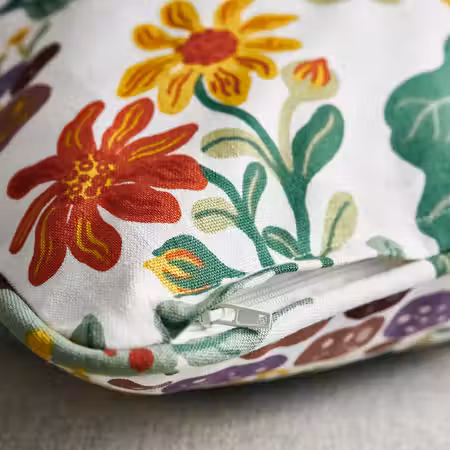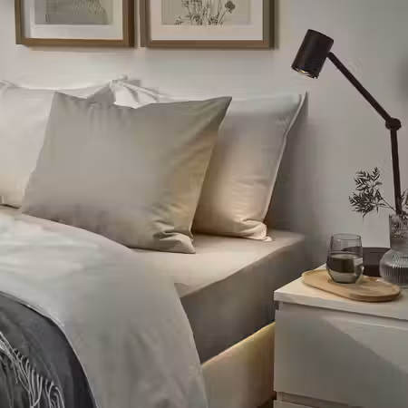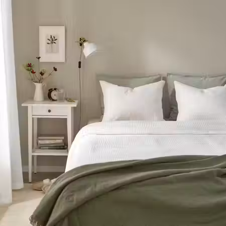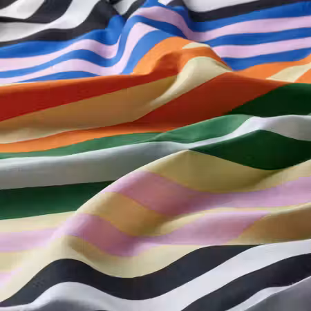 Наволочка SNÖDROTTNING в разноцветную полоску создаёт яркий и динамичный акцент в спальне.