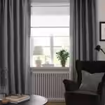 Гардина ЛЕНДА темно-серого цвета с тесьмой по верхнему краю сделана из красивой ткани с особым переплетением нитей, которое визуально удлиняет окно.
