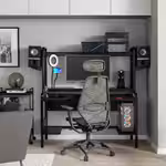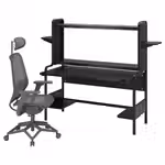 Геймерский стол и стул, чёрный/серый Подробная информация о товаре Полезная информация SE-343 81 Älmhult, IKEA.com Материал и уход Сталь, Эпоксидное/полиэстерное порошковое покрытие ДСП, Меламиновая пленка, Пластиковая окантовка Пластиковая окантовка ДСП, Мела
