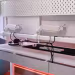 Благодаря решению для организации проводов под столешницей на столе легко поддерживать порядок.