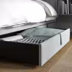 Ящики для хранения имеют такую же серую обивку Кабуса, как и каркас кровати, и идеально помещаются под кроватью.