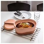 Можно готовить с небольшим количеством масла или без масла. Перед первым использованием обязательно погрузите горшок в воду. После мытья горшок должен полностью высохнуть. Со временем материал потемнеет, что естественно для керамики этого вида.