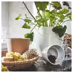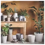 Горшки для растений KLARBÄR созданы дизайнером Илзе Кроуфорд и изготовлены из каменной керамики с матовым покрытием и окрашенной глазурью, содержащей шамот — перемолотые кусочки обожженной глины, которые часто используются для повышения прочности готового изделия. Благодаря шамоту в глазури поверхность также становится более грубой и шероховатой, и на ней могут оставаться пятна. Но она легко отмывается — просто обрызгайте горшок водой и оставьте сохнуть на воздухе.