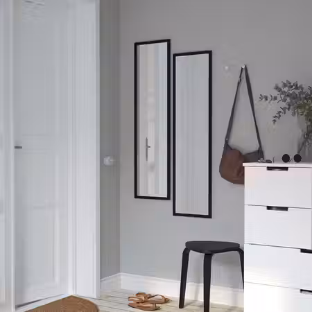 Зеркало в современной матовой черной раме можно использовать в любой комнате вашего дома.