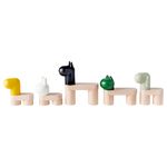 В набор входит: 5 голов, 3 небольшие фигурки в виде тел, 2 длинные фигурки в виде тел, 4 короткие ножки, 4 ножки средней длины и 2 длинные ножки.