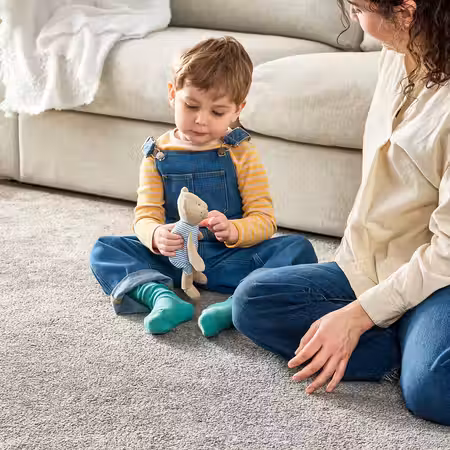 Серый ковер с белыми точками, создающий ощущение уюта.