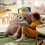 Огромная мягкая игрушка пробуждает воображение и становится надёжным товарищем по приключениям в волшебном мире игр.