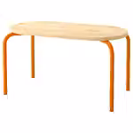 Деревянная столешница и изогнутые металлические ножки оранжевого цвета делают стол прочным и универсальным.