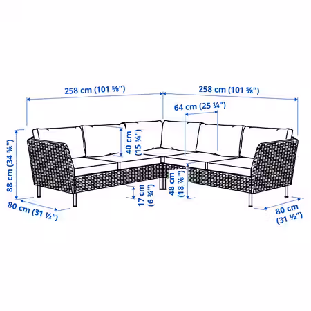 2-местный модульный диван, садовый Подробная информация о товаре Полезная информация SE-343 81 Älmhult, IKEA.com Сборка и документы Инструкции по сборке 105.102.99 NÄMMARÖ Секция модульного садового дивана 105.102.99 NÄMMARÖ Спинка садового модульного дивана 6