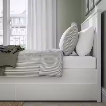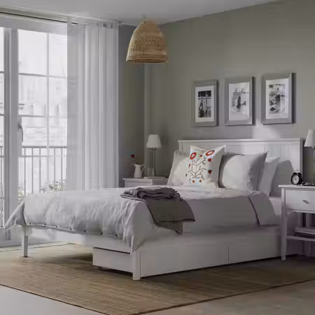 Реечное дно ЛЕИРСУНД оснащено изогнутыми рейками, зонами комфорта и 6 регулируемыми рейками для оптимального удобства, а открытая конструкция позволяет воздуху циркулировать и сохраняет матрас свежим.