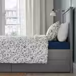 Реечное дно ЛЕИРСУНД оснащено изогнутыми рейками, зонами комфорта и 6 регулируемыми рейками для оптимального удобства, а открытая конструкция позволяет воздуху циркулировать и сохраняет матрас свежим.