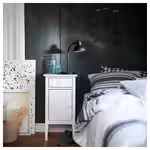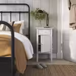 Эта прикроватная тумба с длинными коническими ножками, которые придают ей воздушности, хорошо сочетается с высокими кроватями, а ещё под ней легко мыть пол.