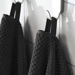 Мягкое и пушистое черное полотенце ГУЛВИАЛ средней толщины (плотность 500 г/м²) изготовлено из хлопка, обладает прочностью и хорошо впитывает влагу.