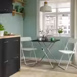 Стол и 2 табурета, складной чёрный/чёрный Установите прилагающиеся крючки на ножки стола, чтобы зафиксировать их в сложенном положении.