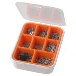 ВРазмеры (диам. x длина): проволочные гвозди 1,7×45 мм, 1,7×35 мм по 50 шт.; 1,4×25 мм, 1,4×15 мм по 100 шт.; гвозди с потайной головкой 1,7×40 мм 50 шт., 1,2×20 мм 100 шт.; гвозди с плоской шляпкой 1,9×20 мм 50 шт.; мебельные гвозди 1,9×17 мм 50 шт.