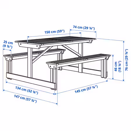 Наслаждайтесь приятным времяпрепровождением с семьей и друзьями за этим просторным и долговечным столом для пикника, рассчитанным на 6 персон.