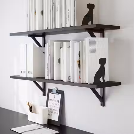 Навесной полочный модуль позволяет максимально эффективно использовать пространство стены, освобождая место на полу.