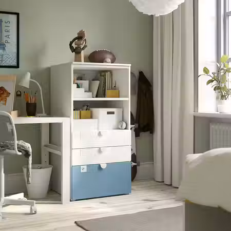 PLATSA 295.446.71 SMÅSTAD / Стеллаж - белый синий/с 3 ящиками 60x57x123 см