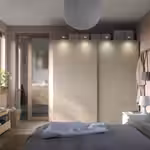 Эта раздвижная дверь идеально сочетается с каркасами PAX с такой же отделкой.