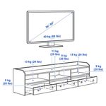 Мы рекомендуем выбирать тумбу под ТВ шириной немного больше телевизора. Эта тумба подходит для ТВ до 80 дюймов. На нее можно также поставить телевизор большего размера, если его вес не превышает указанную максимальную нагрузку на верхнюю панель тумбы.