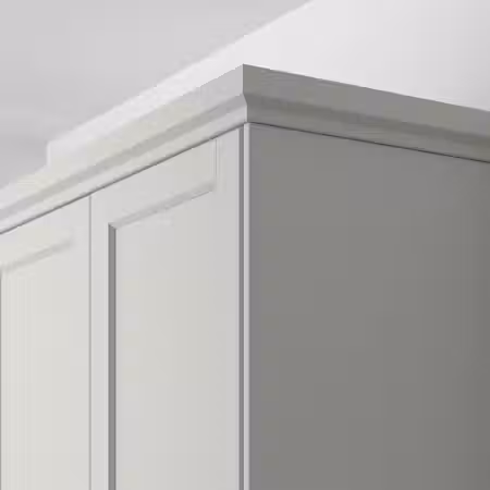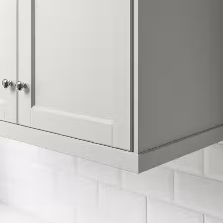 Можно дополнить накладными панелями, цоколем и декоративным карнизом ХАВСТОРП светло-серого цвета.