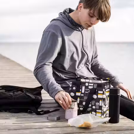 FLADDRIG 104.972.12 ФЛАДДРИГ Сумка д/завтраков - с рисунком серый 25x16x27 см