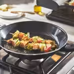 Этот материал равномерно распределяет тепло и быстро реагирует на изменение температуры, поэтому пища не пригорает и не прилипает к поверхности.